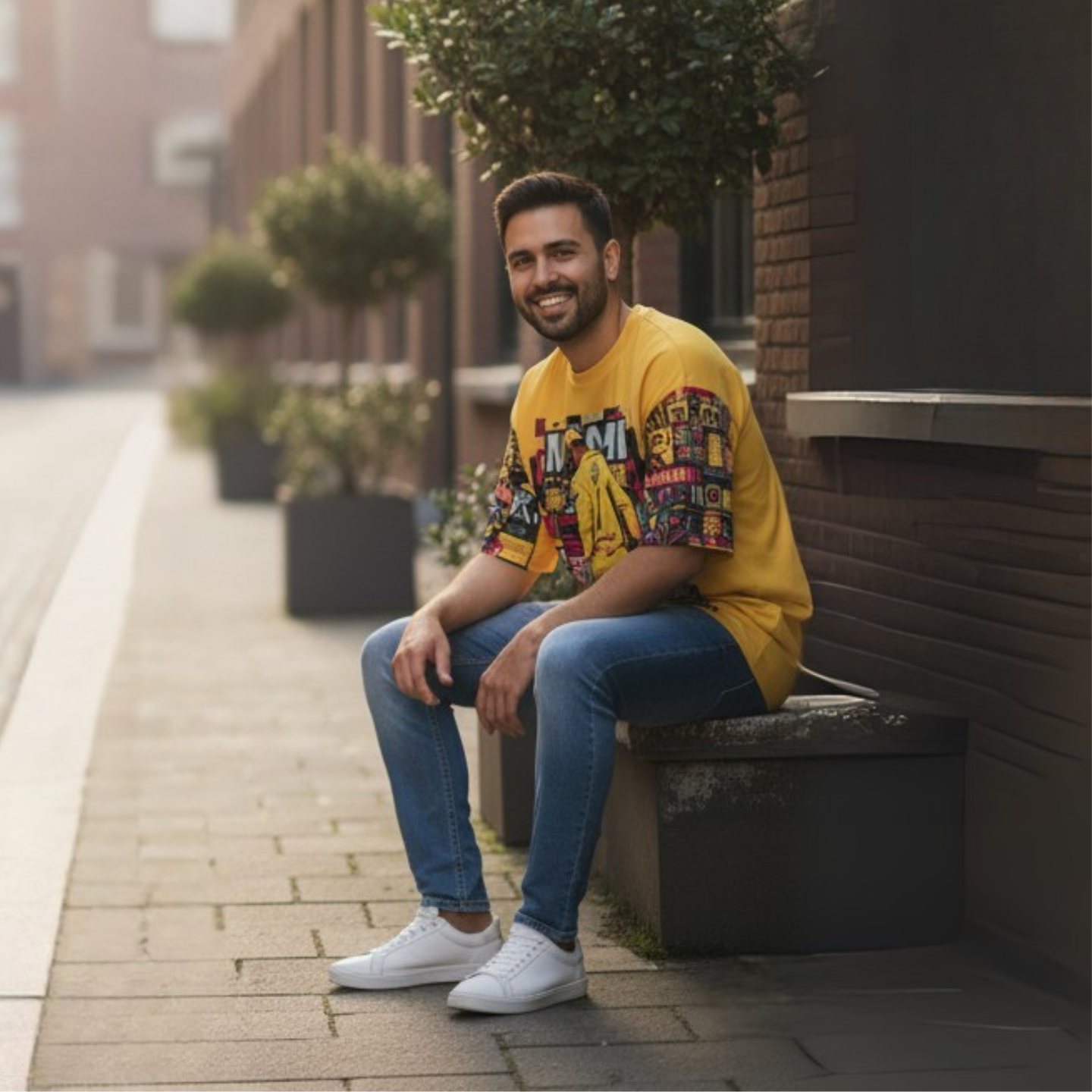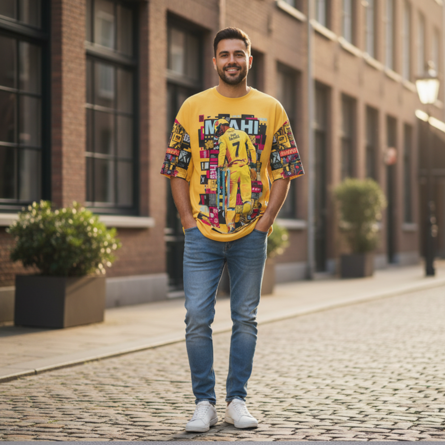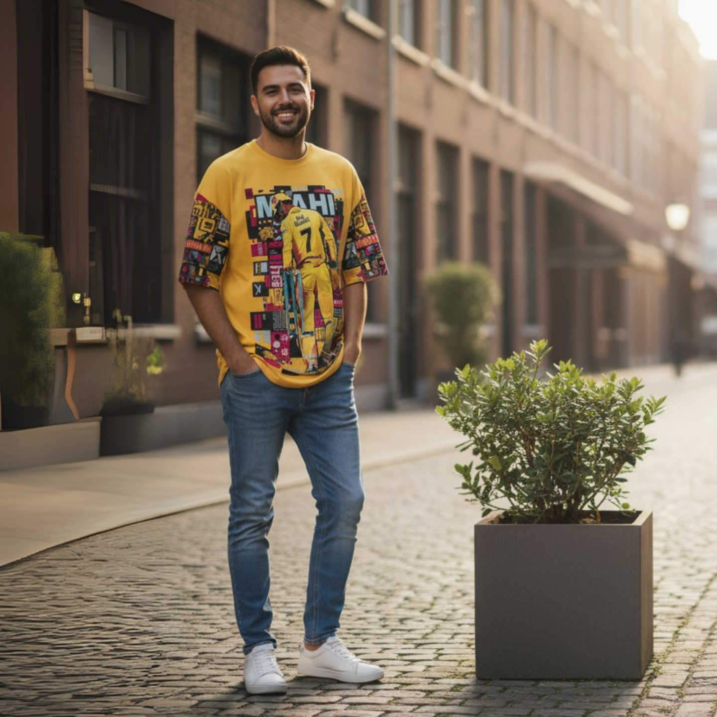 Unisex oversized graphic T-shirt featuring the iconic No. 7 in yellow.